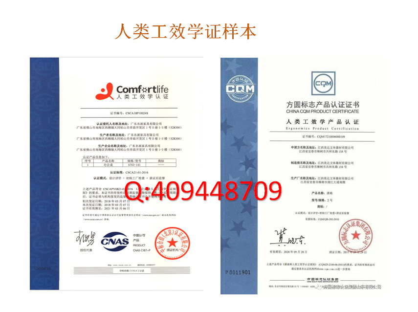 人類工效學(xué)認(rèn)證的證書樣本見(jiàn)上圖。